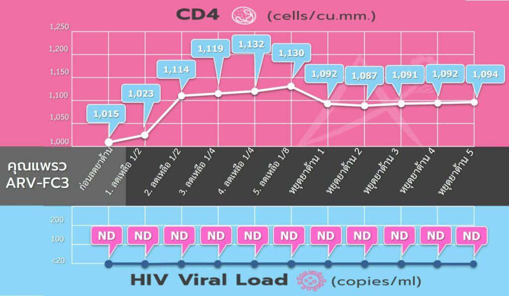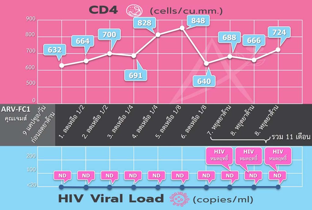 ตรวจไม่พบ HIV ต่อเนื่องและมี CD4 = 1,094 cells/cu.mm