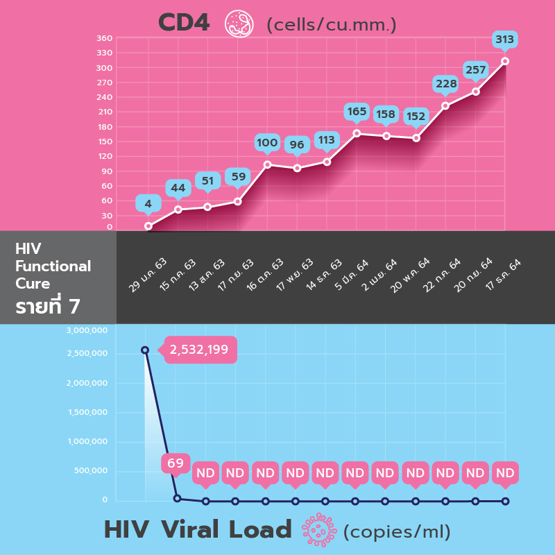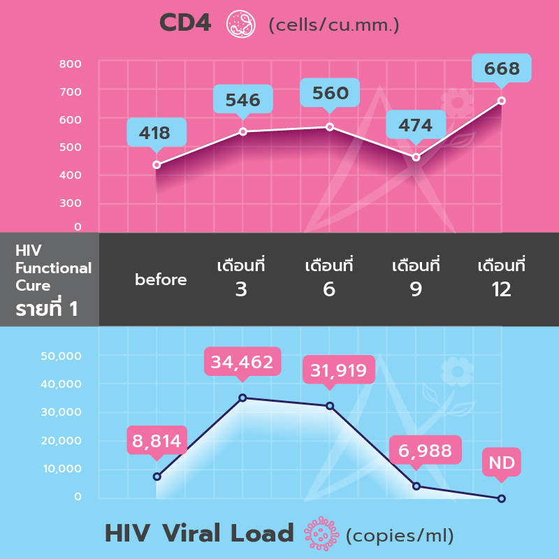 ตรวจไม่พบ HIV ต่อเนื่องและมี CD4 = 1,094 cells/cu.mm