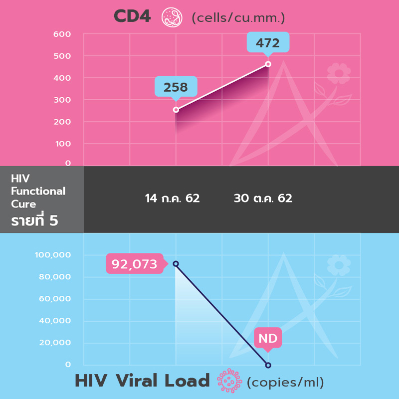 ผลตรวจ HIV Viral Load และ CD4 หลังจากหยุดยาต้านมาแล้วเป็นเดือนที่ 5